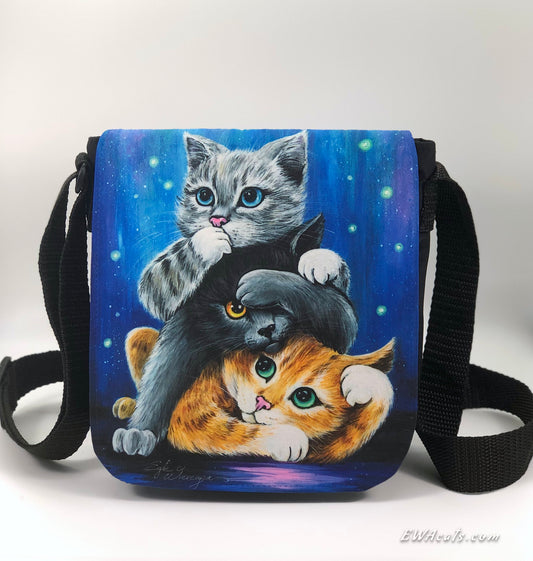 Shoulder Bag "Three Wise Kitties" with a Removable Flap