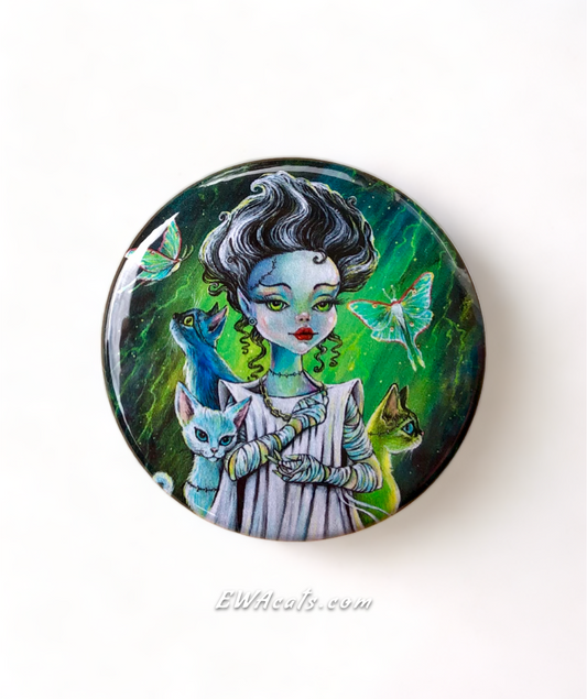 Button "Bride of Frankenstein and Her Franken Kitties"