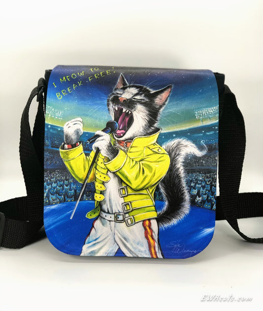 Shoulder Bag "I Meow to Brake Free!" with a Removable Flap