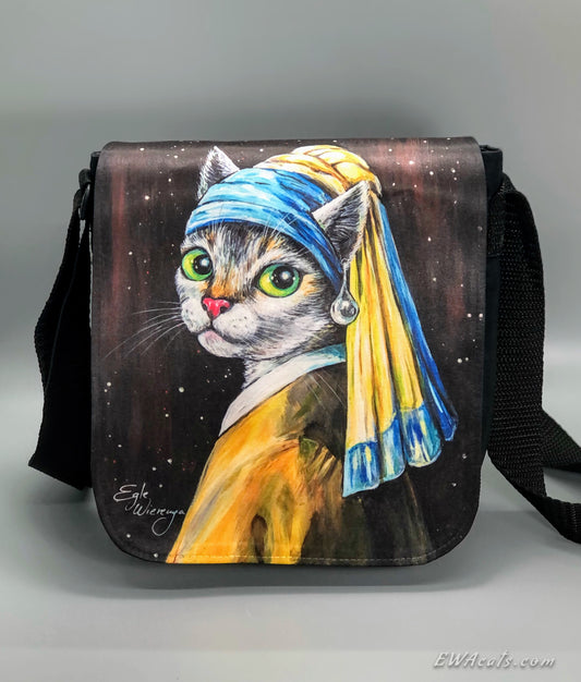 Shoulder Bag "Cat With a Pearl Earring" with a Removable Flap