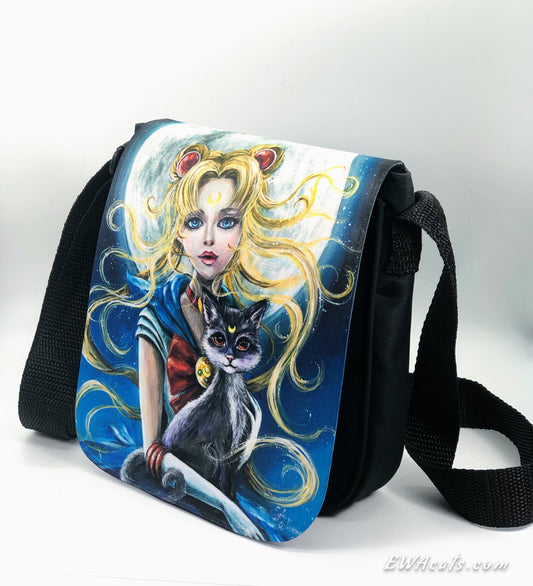 Shoulder Bag "Sailor Moon & Luna" with a Removable Flap
