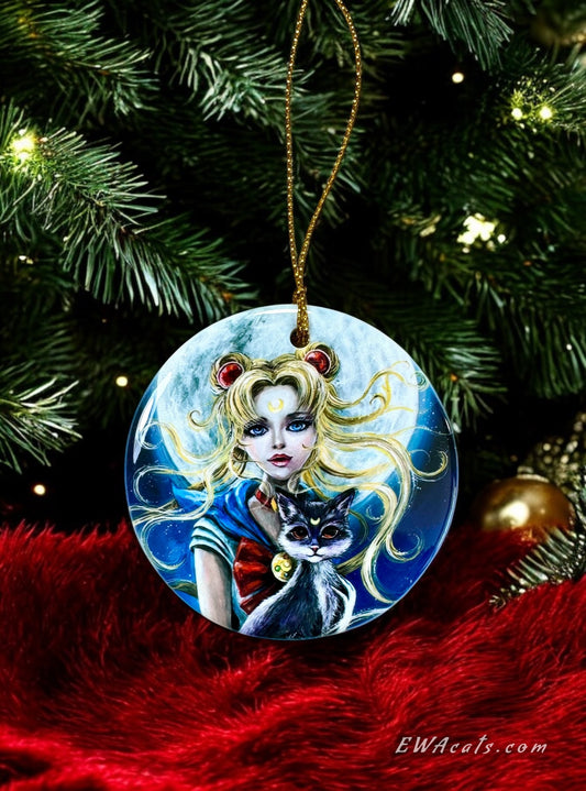 ORNAMENT Porcelain 3"x 3" Round "Sailor Moon & Luna"