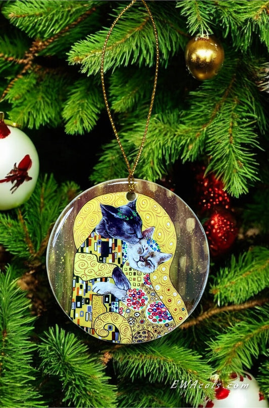 ORNAMENT Porcelain 3"x 3" Round "The Kitty Kiss"