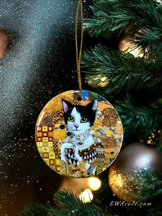 ORNAMENT Porcelain 3"x 3" Round "Cat in Gold"