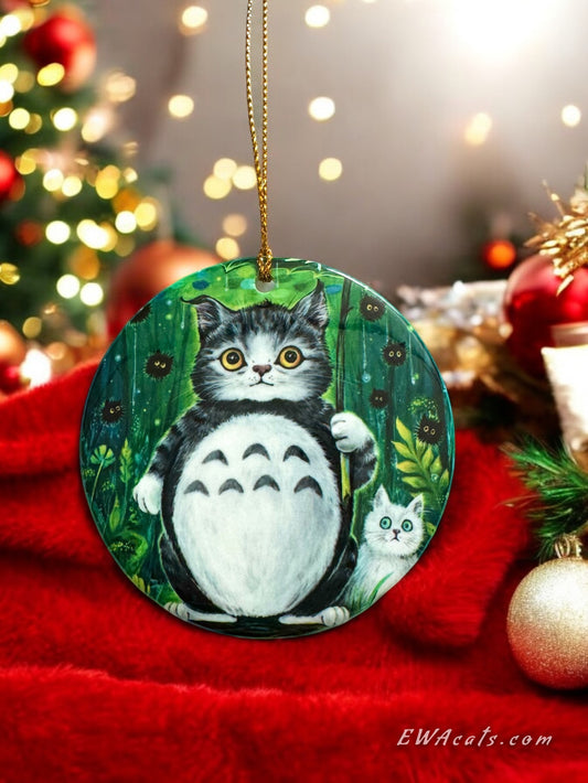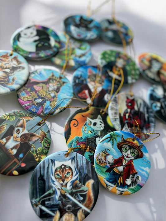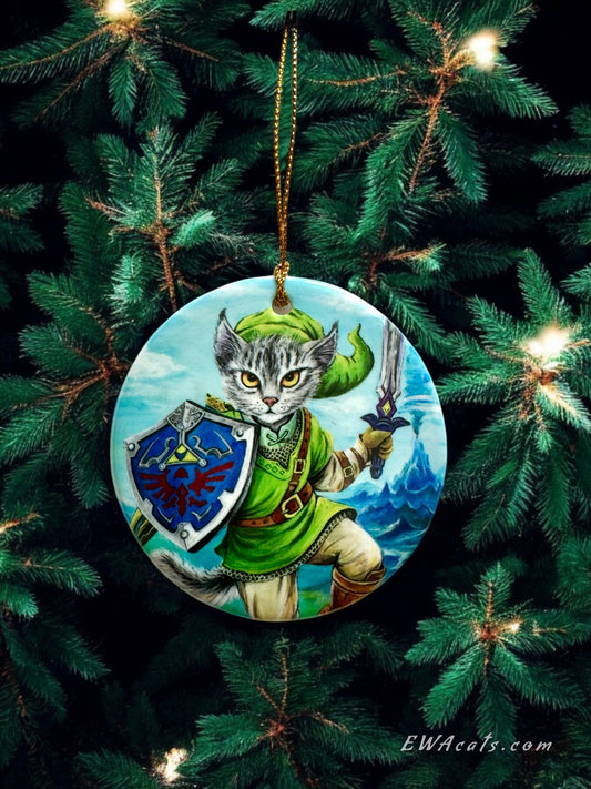 ORNAMENT Porcelain 3"x 3" Round "Kitty Link"