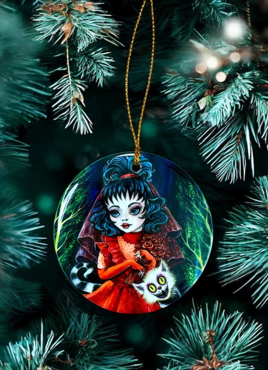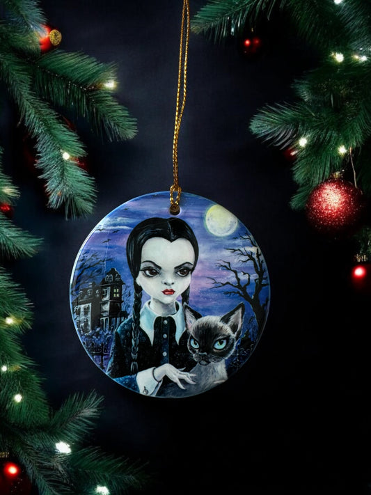 ORNAMENT Porcelain 3"x 3" Round "Wednesday & Her Cat Thursday"