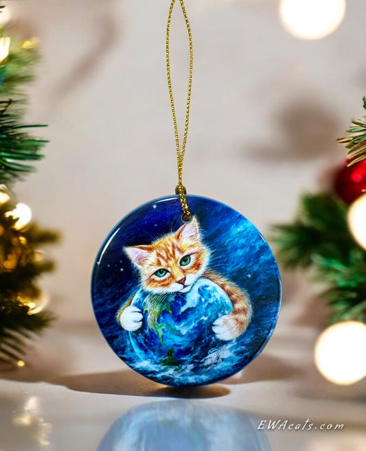 ORNAMENT Porcelain 3"x 3" Round "It's a Cat's World"