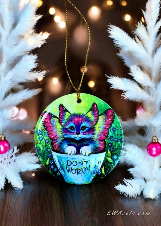 ORNAMENT Porcelain 3"x 3" Round "Don't Worry"