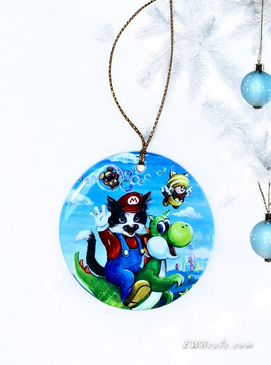 ORNAMENT Porcelain 3"x 3" Round "Mario Kitty"