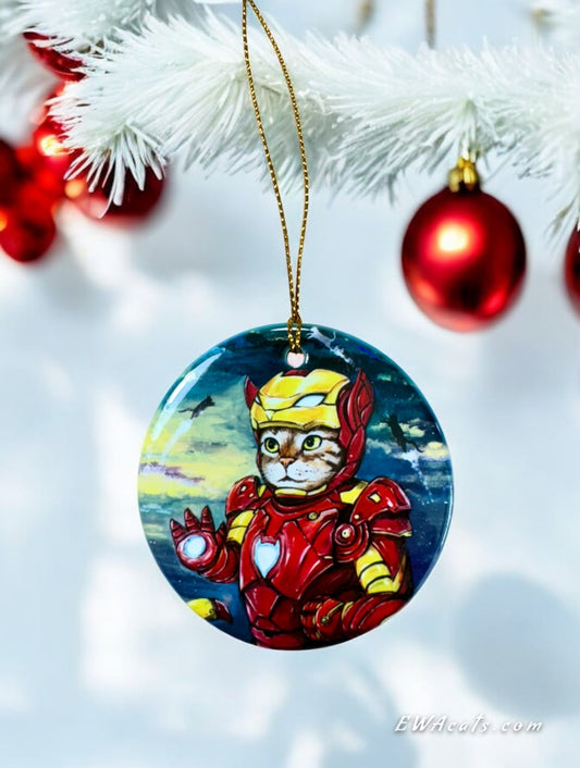 ORNAMENT Porcelain 3"x 3" Round "Iron KItty"