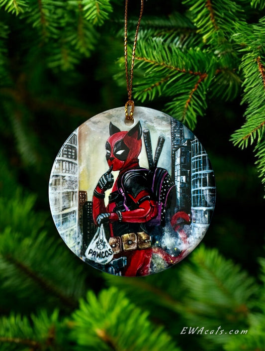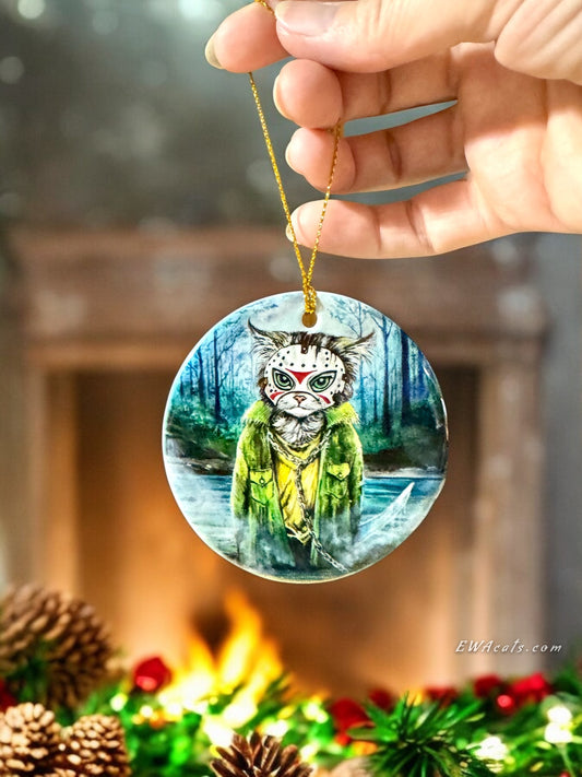 ORNAMENT Porcelain 3"x 3" Round "Jason MeowHiss"