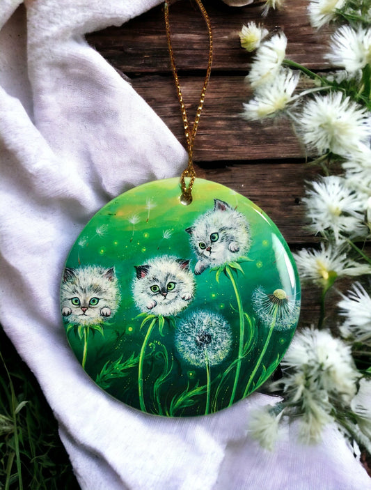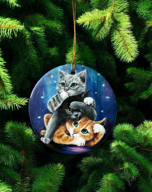 ORNAMENT Porcelain 3"x 3" Round "Kittylions"