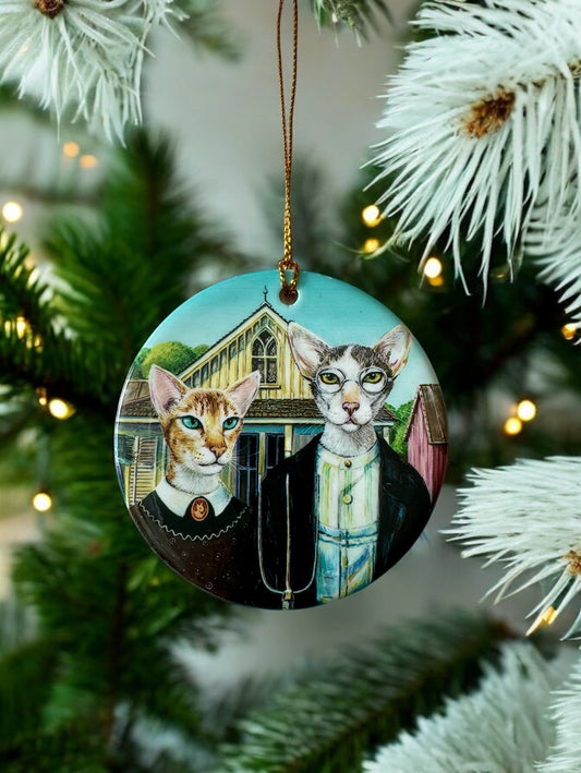 ORNAMENT Porcelain 3"x 3" Round "AmeriCat Gothic"