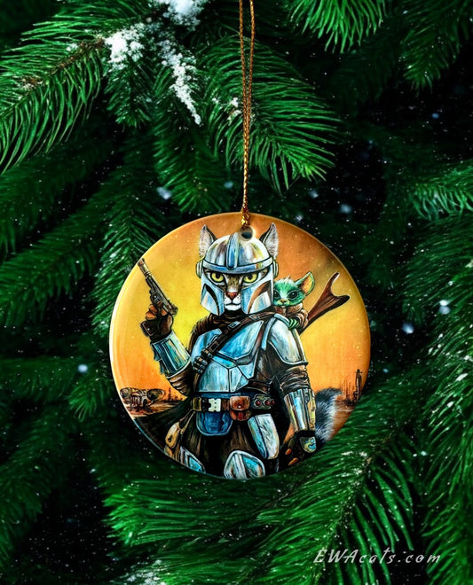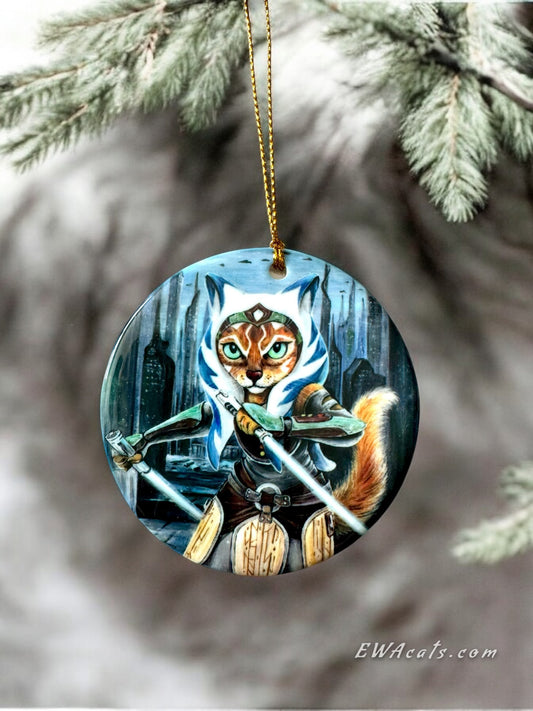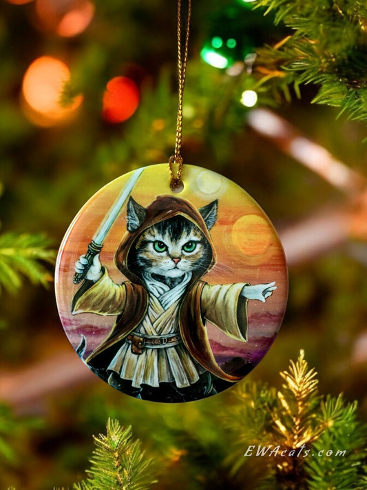 ORNAMENT Porcelain 3"x 3" Round "Obi-Wan Catnobi"