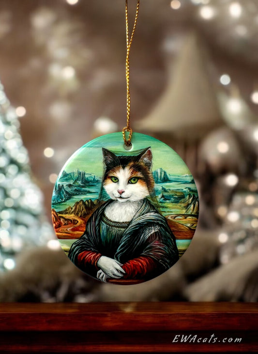 ORNAMENT Porcelain 3"x 3" Round "Meowna Lisa"
