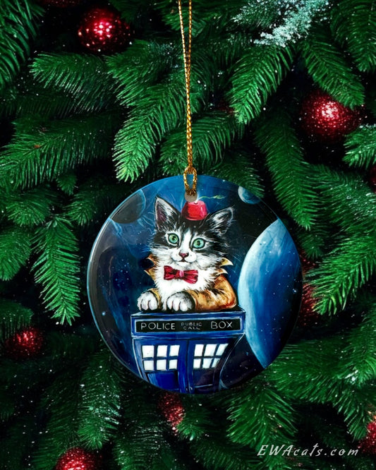 ORNAMENT Porcelain 3"x 3" Round "Doctor Mew"