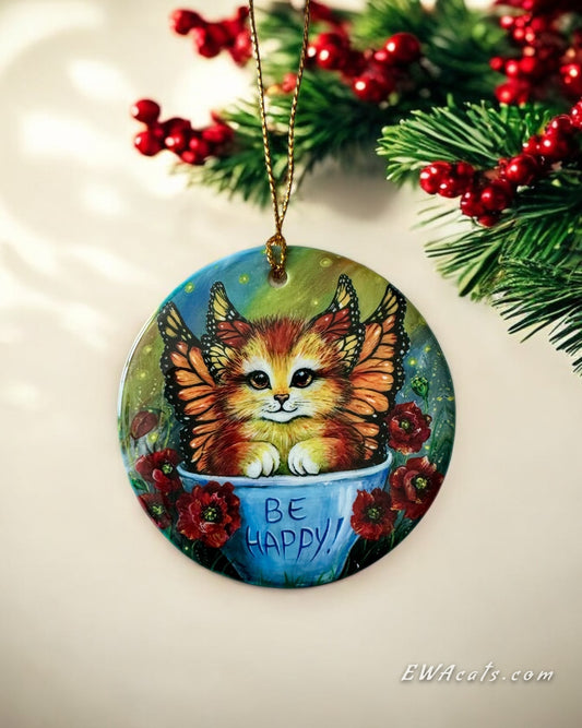 ORNAMENT Porcelain 3"x 3" Round "Be Happy!"