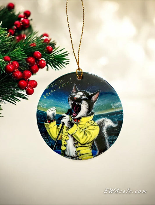 ORNAMENT Porcelain 3"x 3" Round "I Meow to Brake Free!"