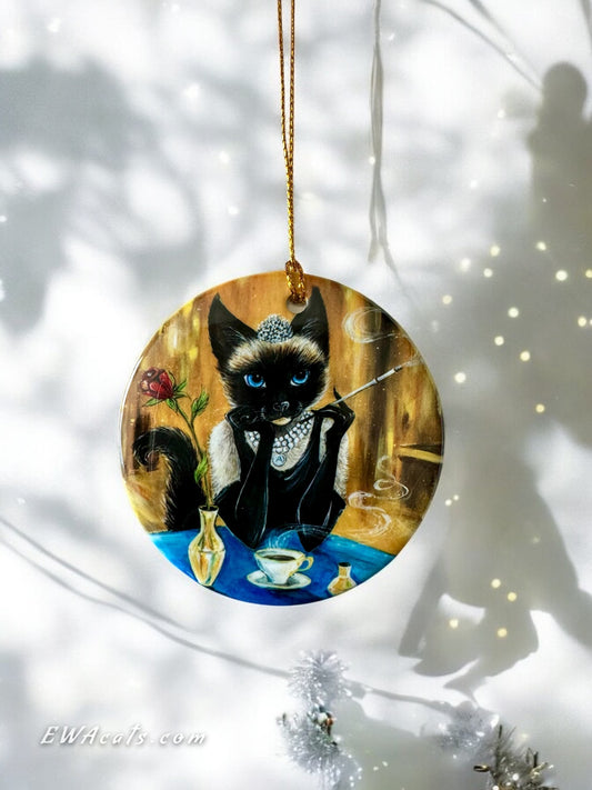 ORNAMENT Porcelain 3"x 3" Round "Audrey HepPurr"