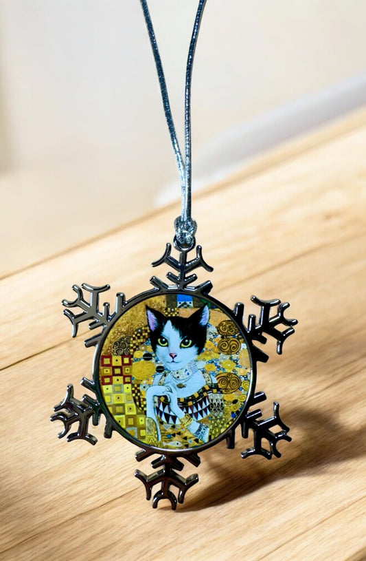 ORNAMENT 3"x 3" Silver Snowflake "Kitty Link" (Image on both sides)