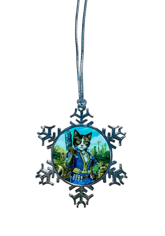 ORNAMENT 3"x 3" Silver Snowflake "Doctor Mew" (Image on both sides)