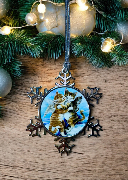 ORNAMENT 3"x 3" Silver Snowflake "Kitty Link" (Image on both sides)