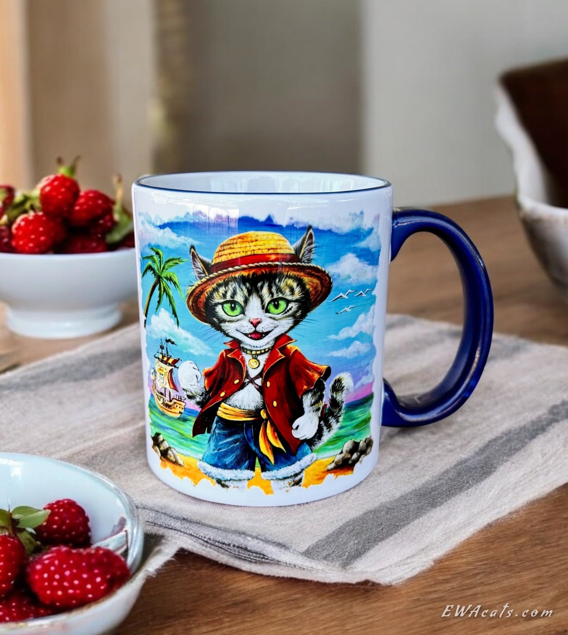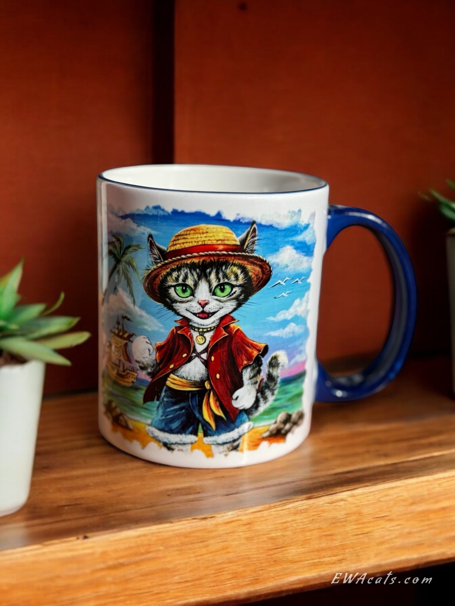11 oz. coffee/tea ceramic mugs. These are high-quality collectible mugs. Bright white, hard-coated, glossy finish with color handle and top rim. We use High Definition High-Quality Dye Sublimation inks. The inks are UV resistant, and the mugs are microwave and top-shelf dishwasher-safe, allowing years of enjoyment!
