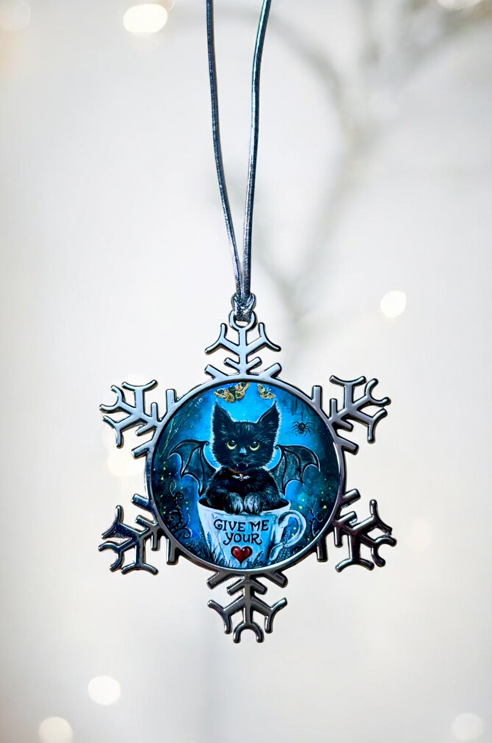 ORNAMENT 3"x 3" Silver Snowflake "Give Me Your Heart!" (Image on both sides)