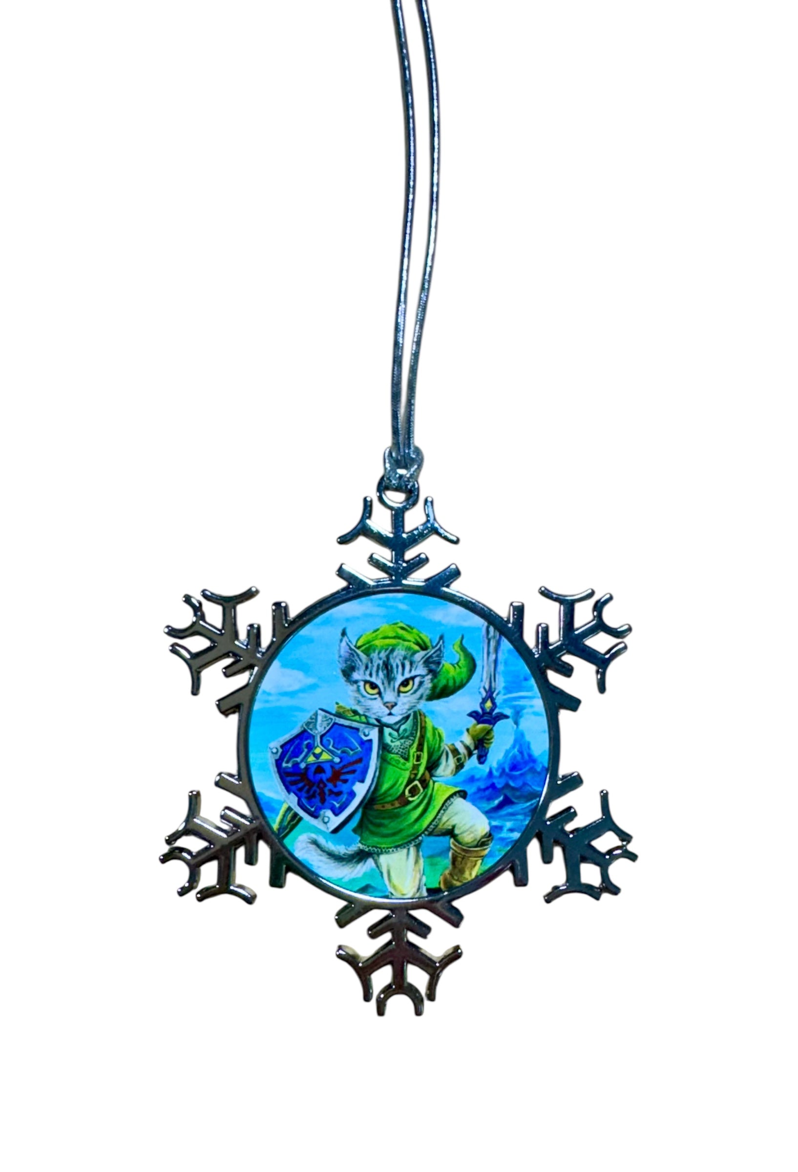 ORNAMENT 3"x 3" Silver Snowflake "Kitty Link" (Image on both sides)