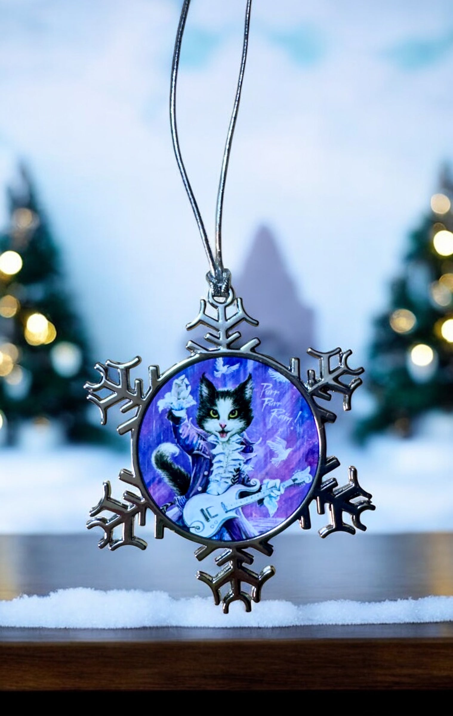 ORNAMENT 3"x 3" Silver Snowflake "Purr Purr Rain!"