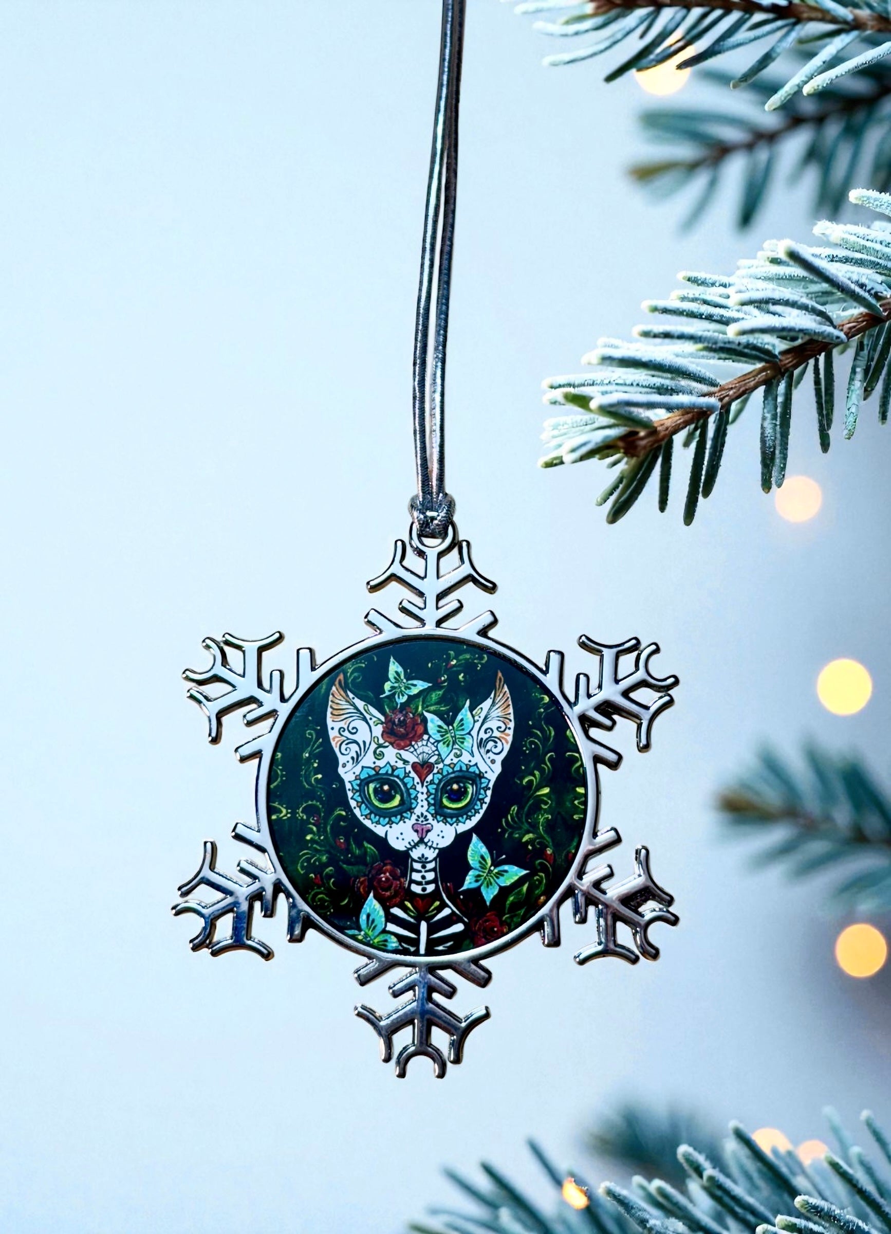 These ornaments are eye-catching keepsakes for your holiday tree or a heartfelt gift for art and cat lovers alike.
