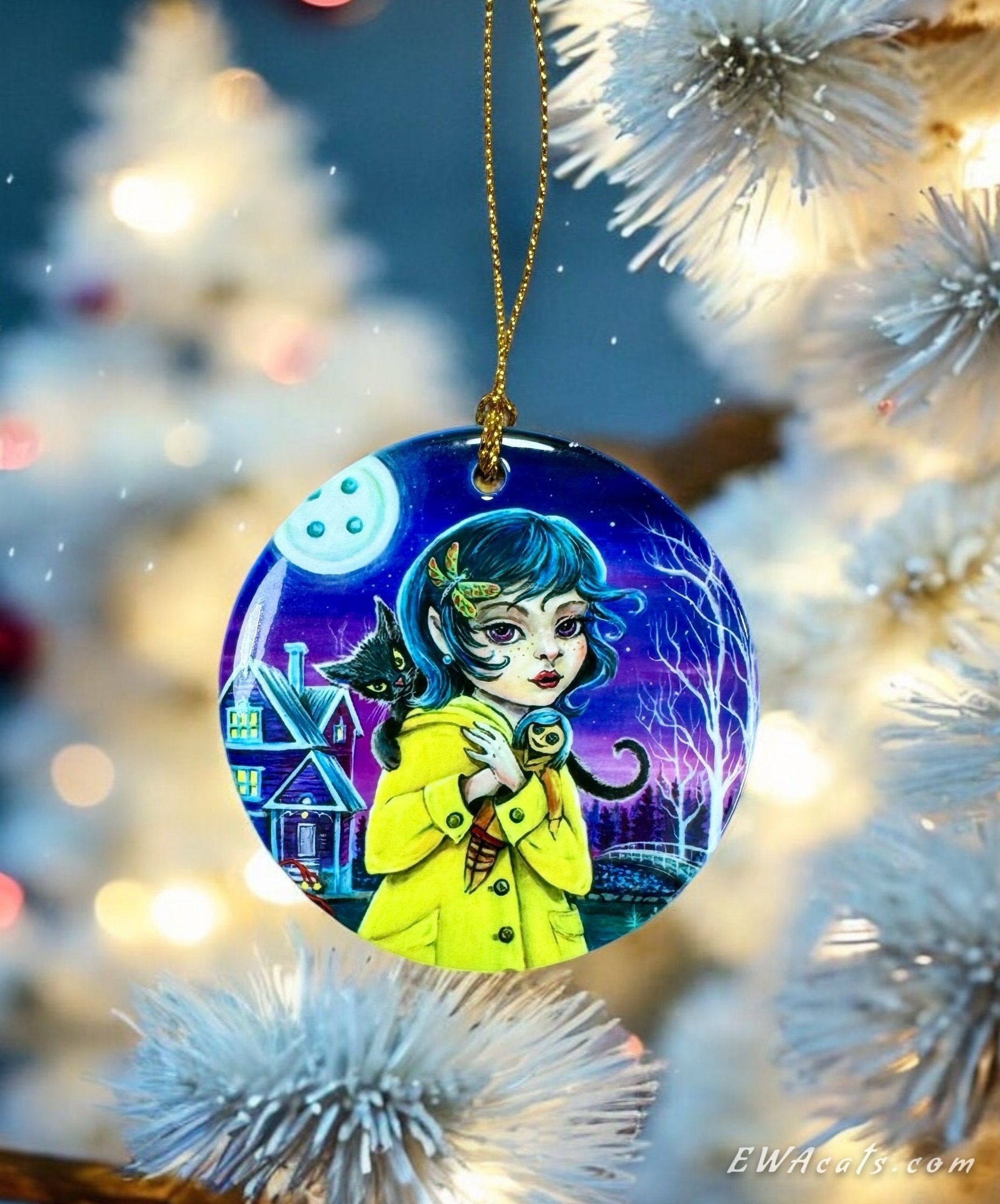 ORNAMENT Porcelain 3"x 3" Round "Coraline"