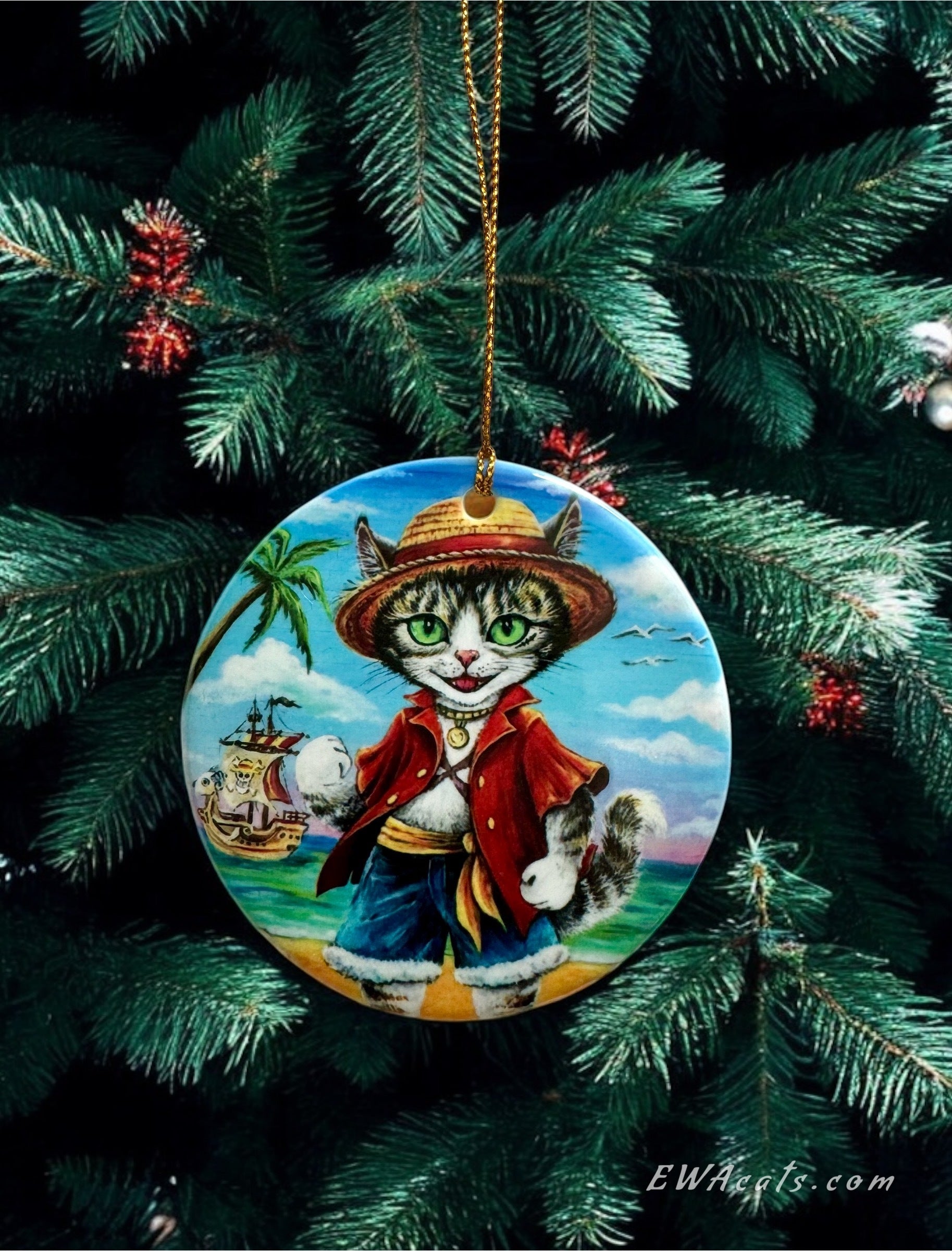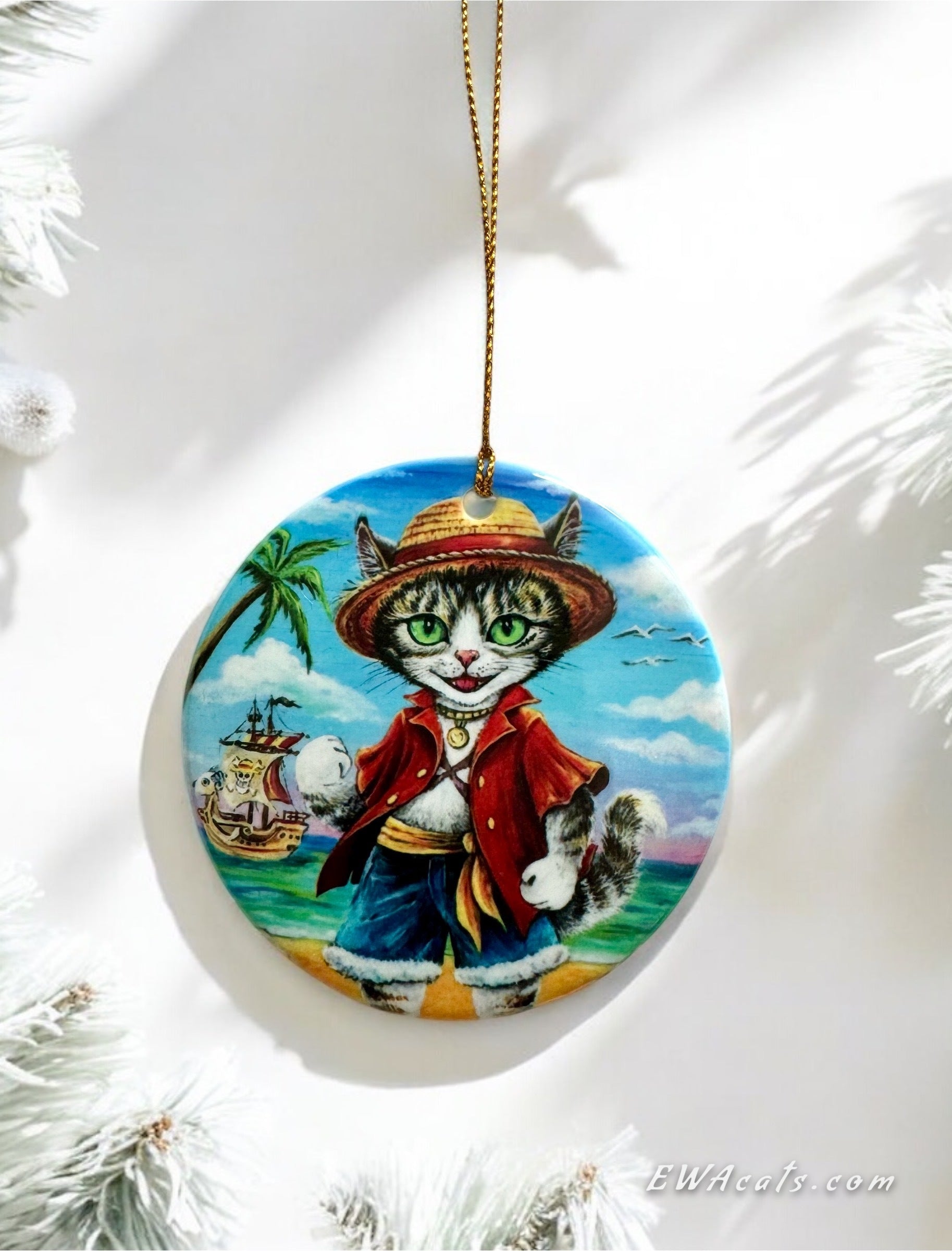 ORNAMENT Porcelain 3"x 3" Round "Monkey D. Fluffy"