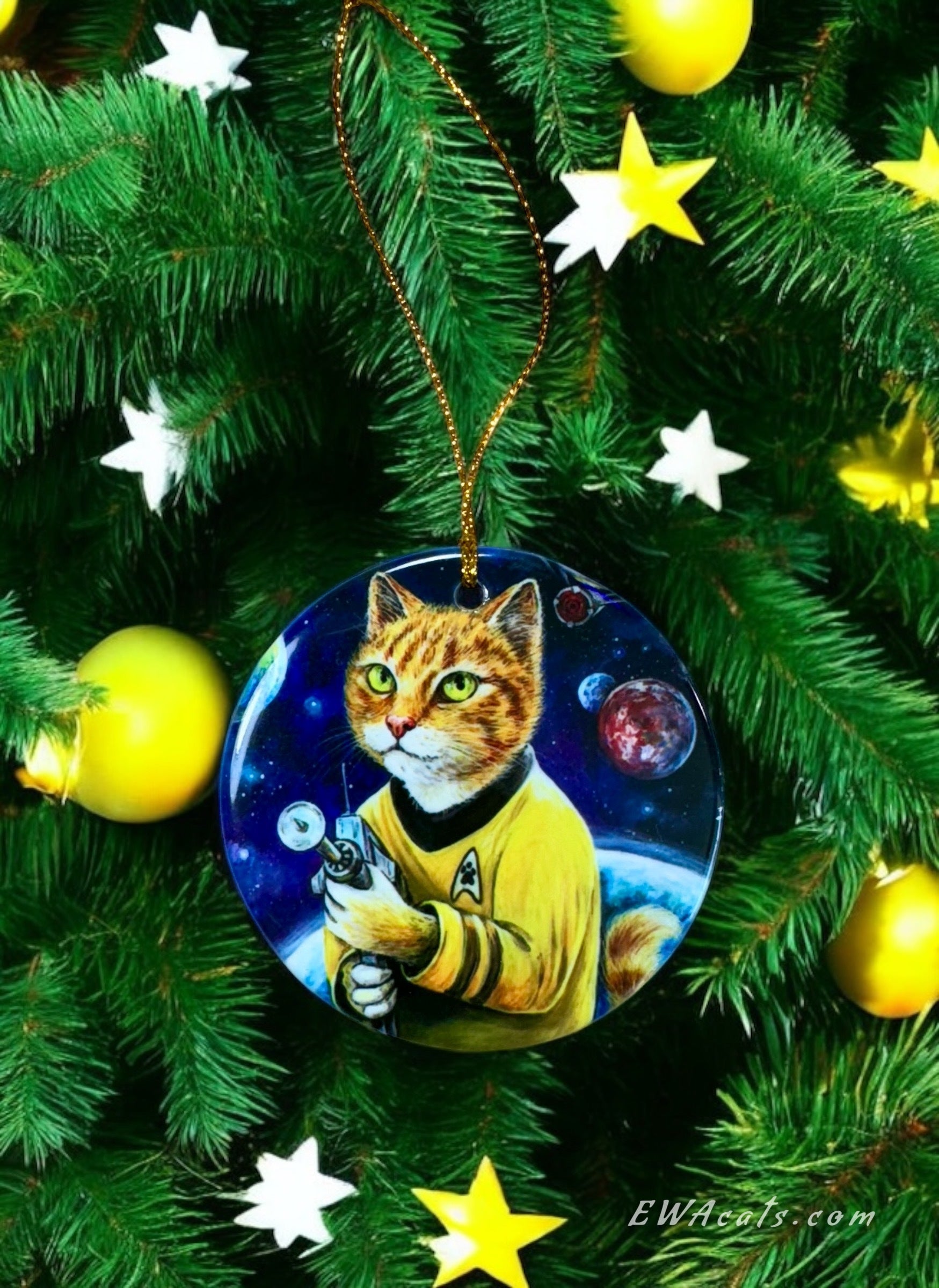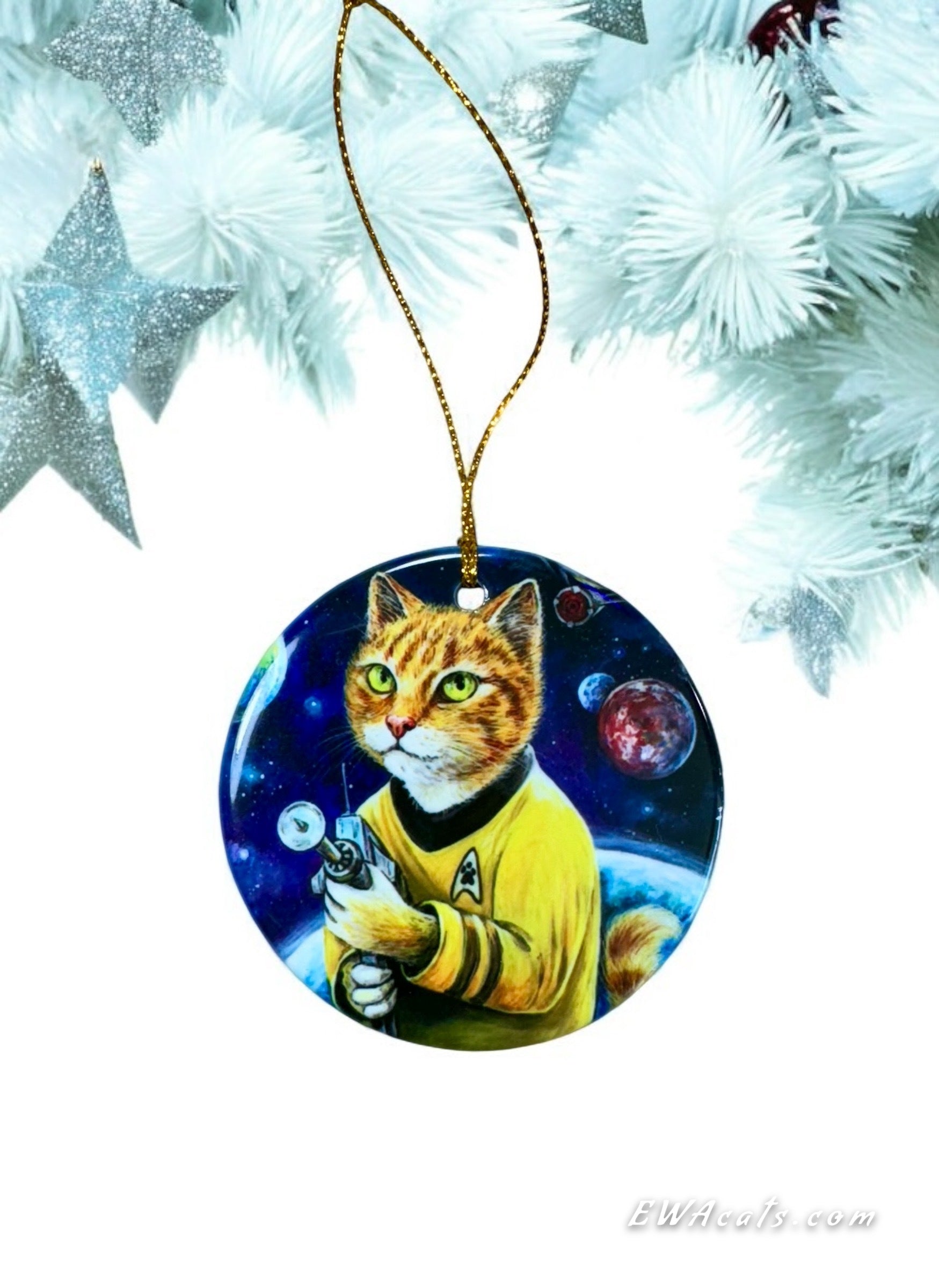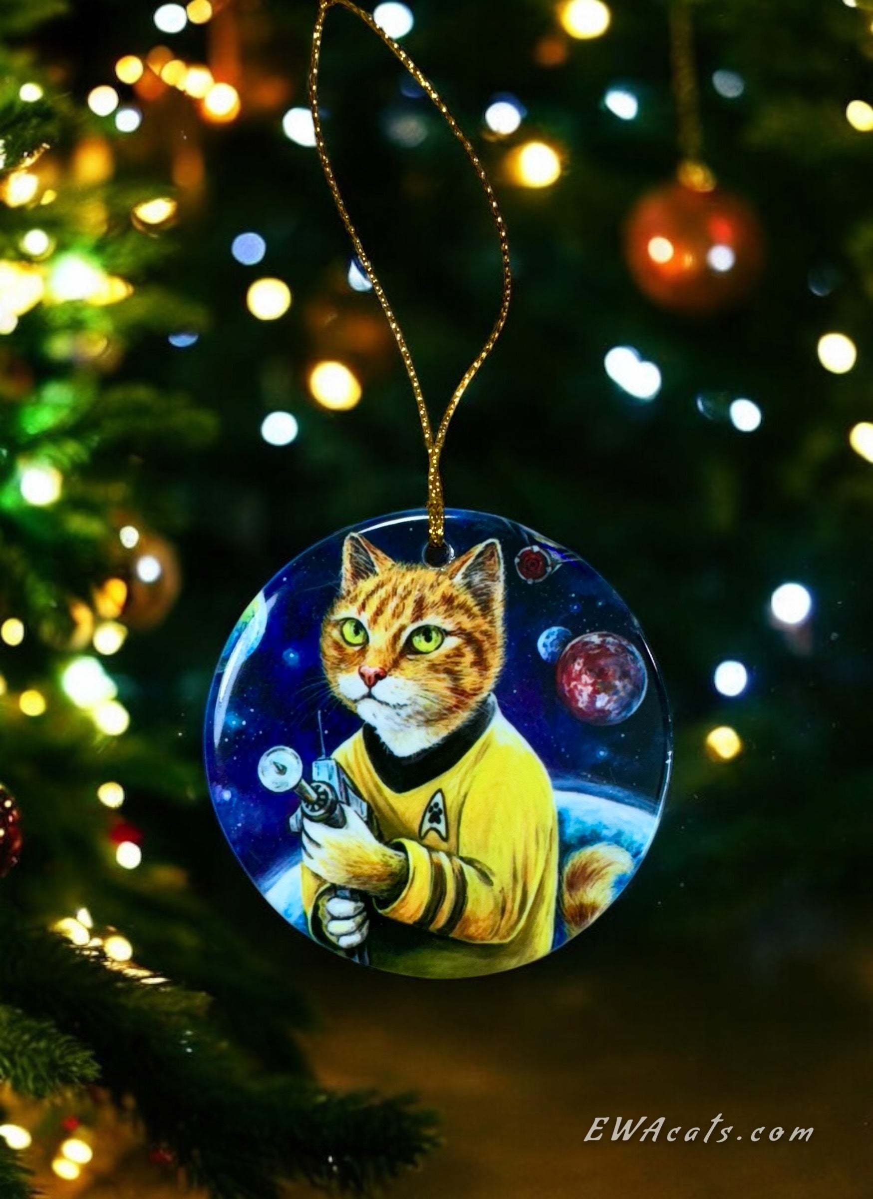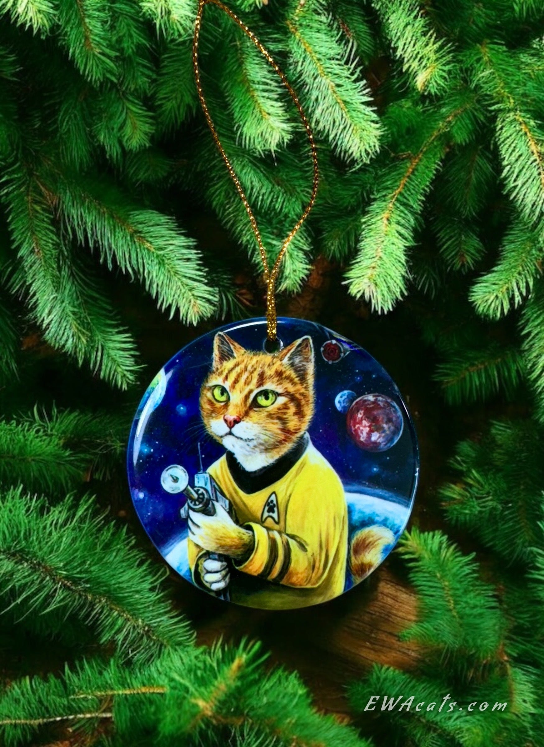 Our 3" x 3" Round Porcelain Ornaments are handmade from my original paintings, with sharp, vibrant details. The image is printed on one side while the other side showcases our beautiful logo with a heart and cat pawprint.