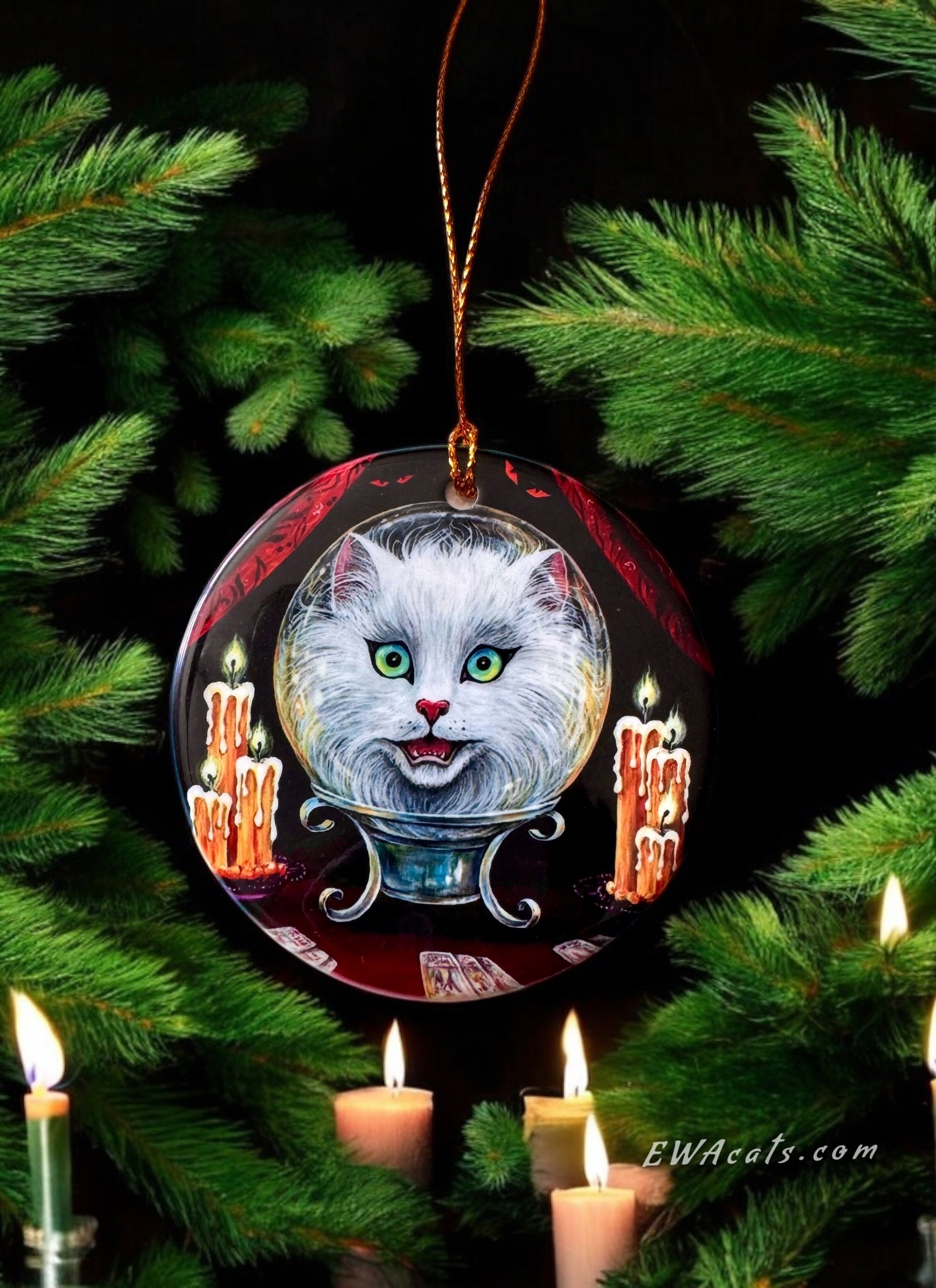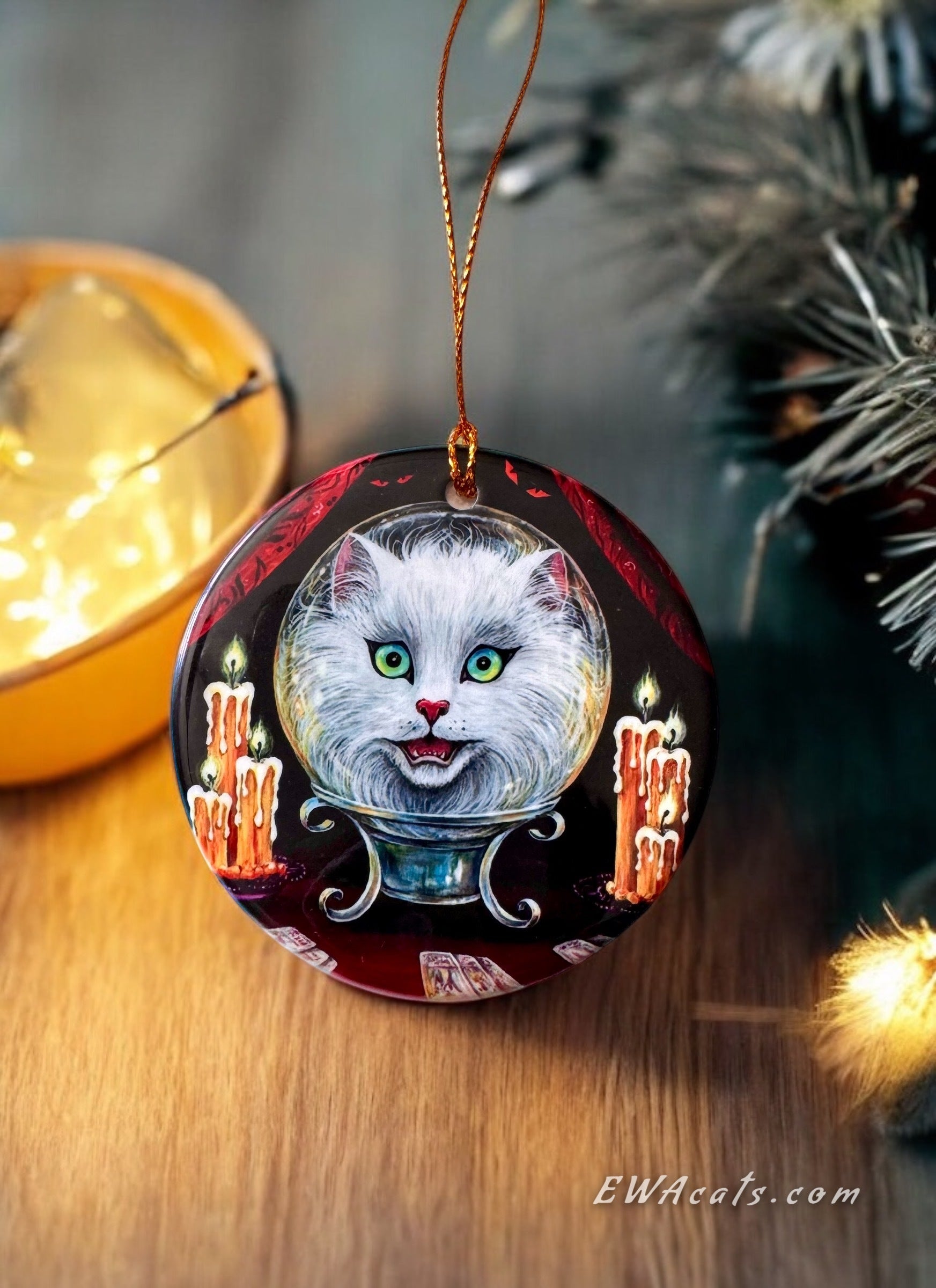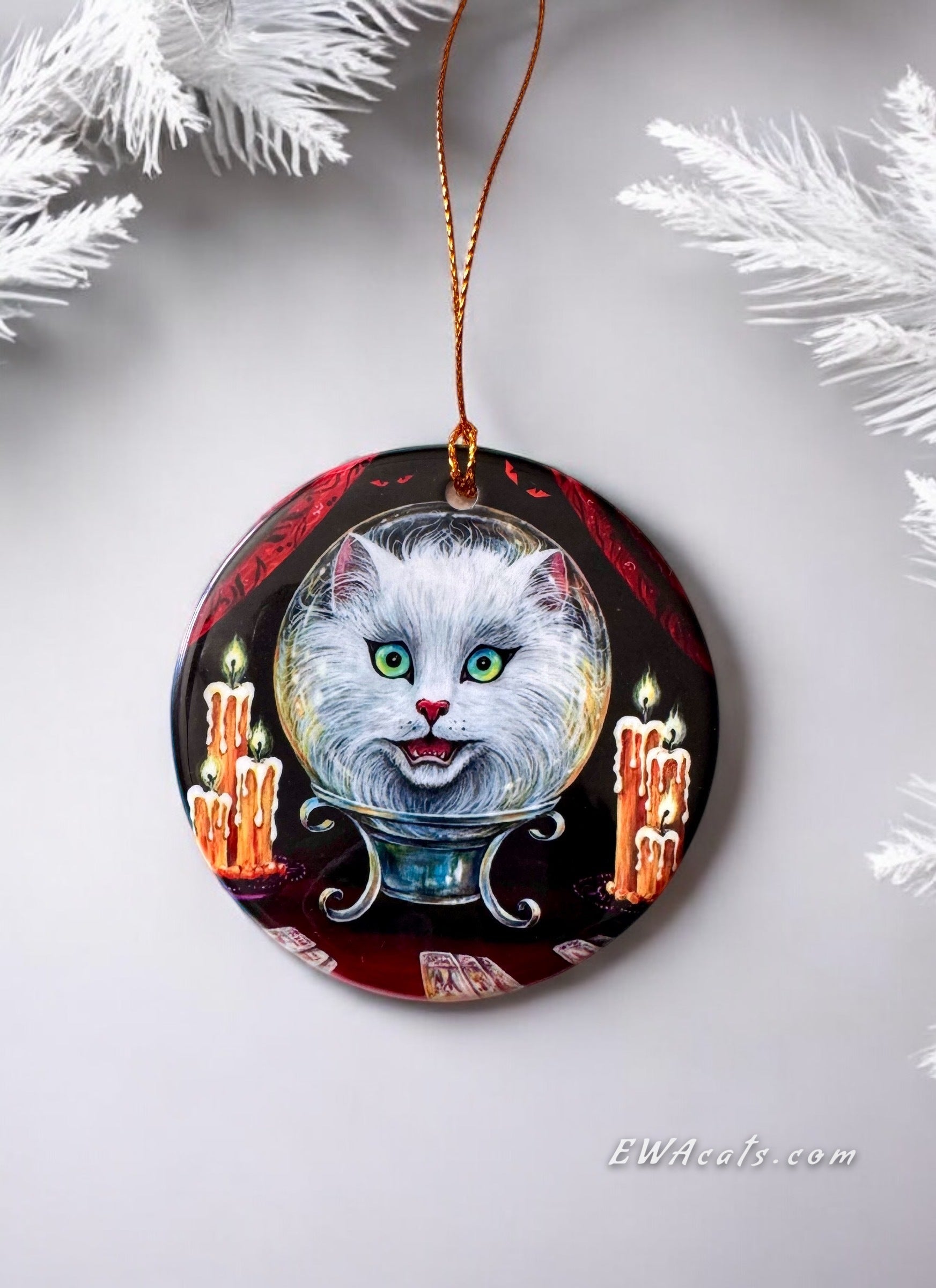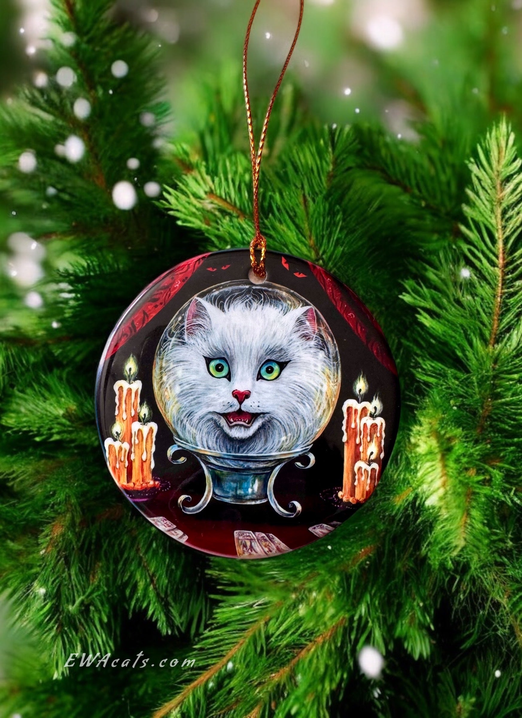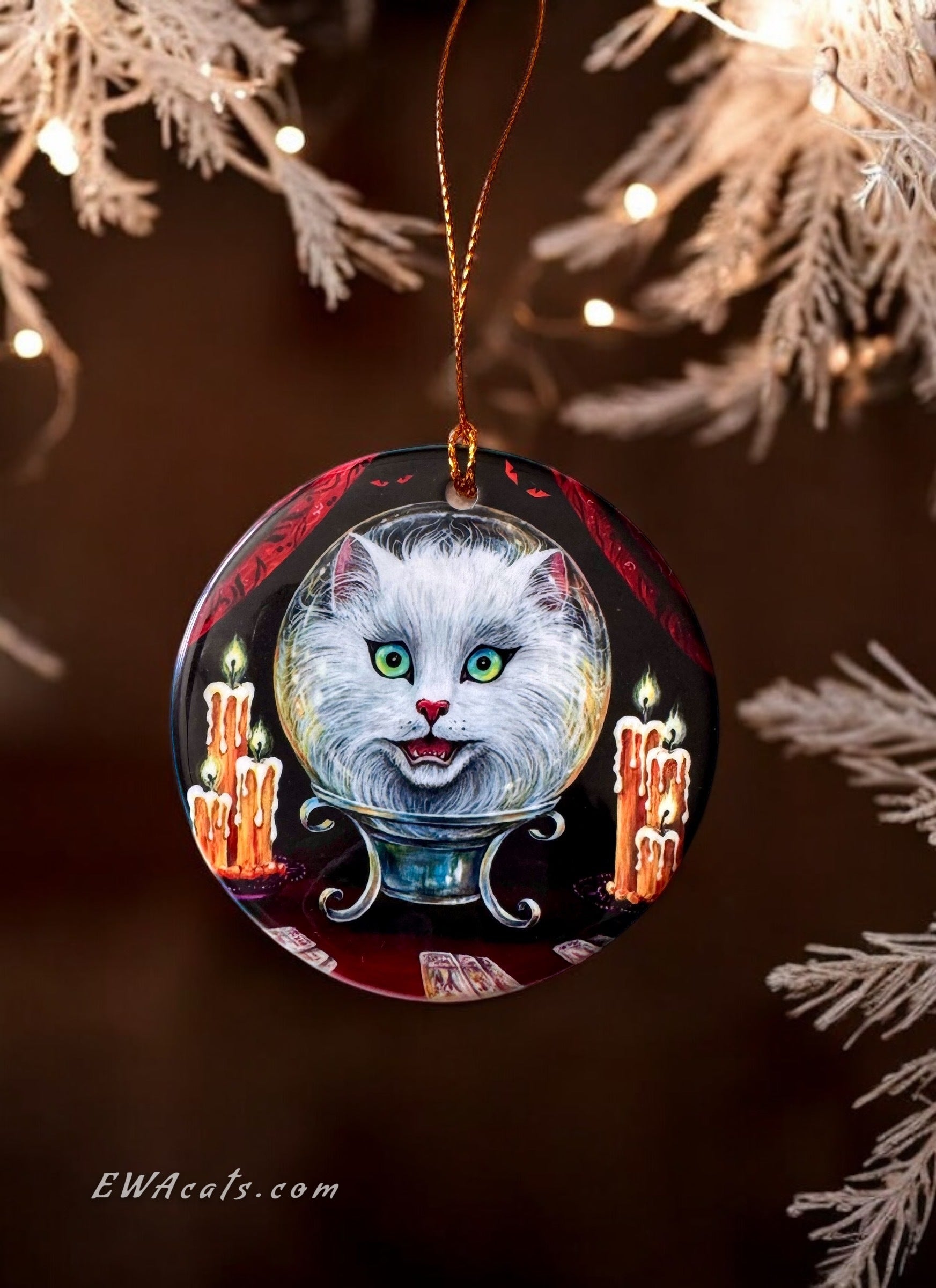 ORNAMENT Porcelain 3"x 3" Round "Meowdame Leota"