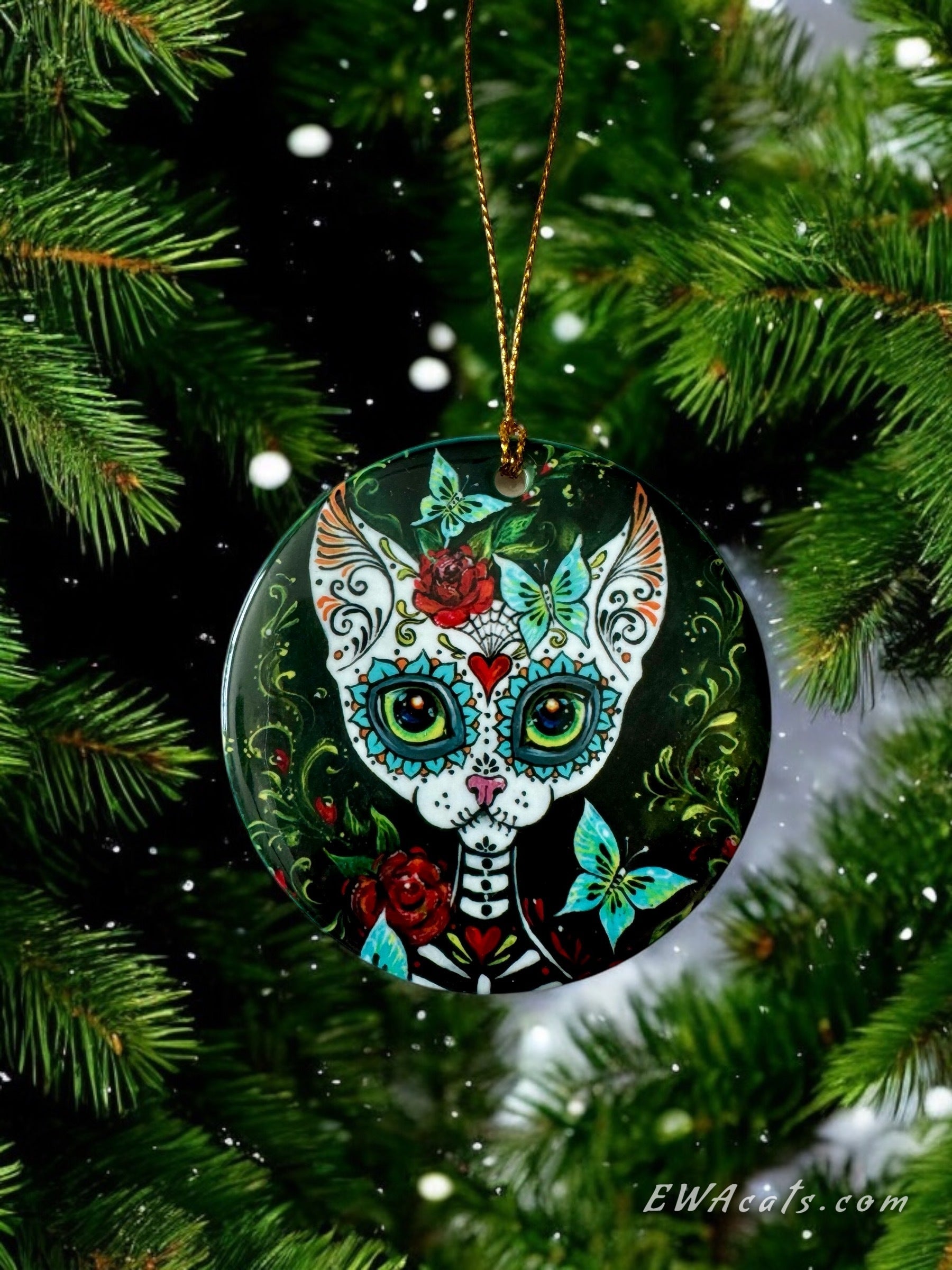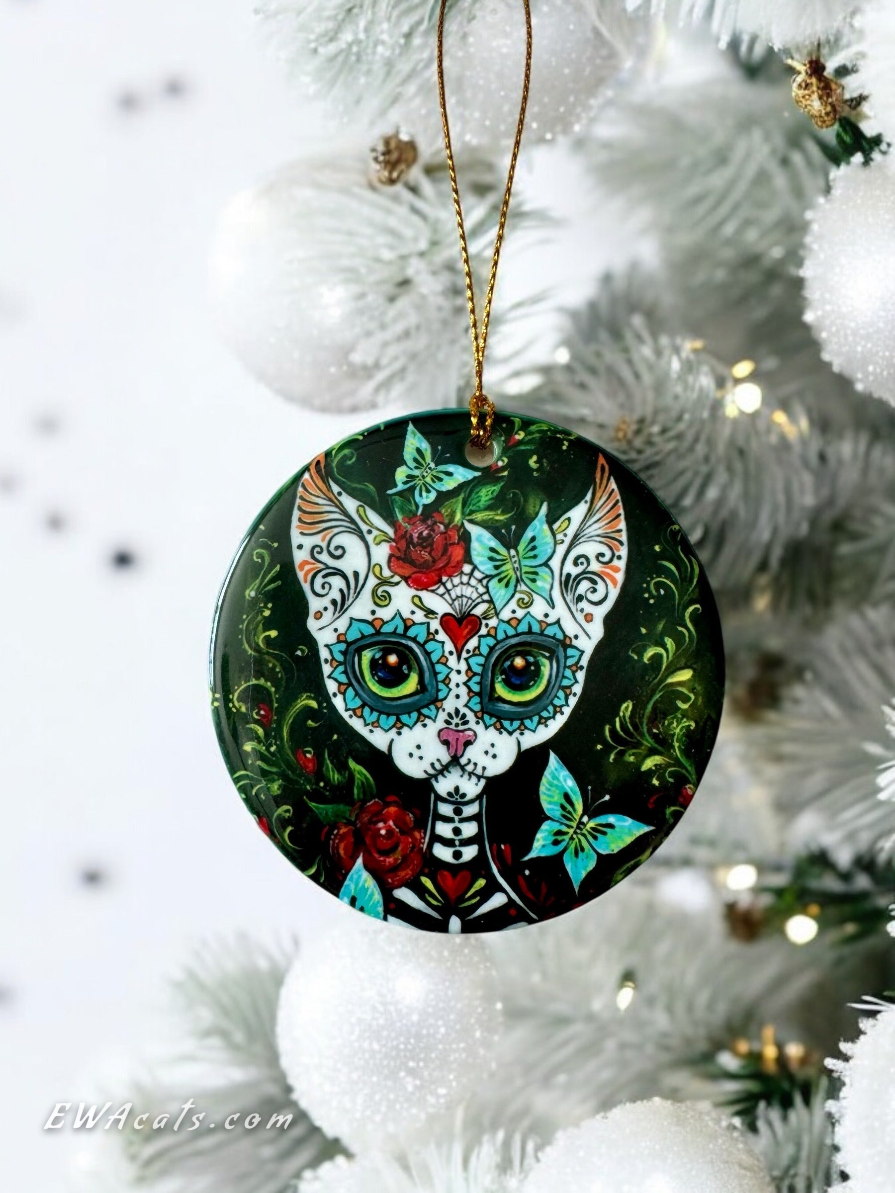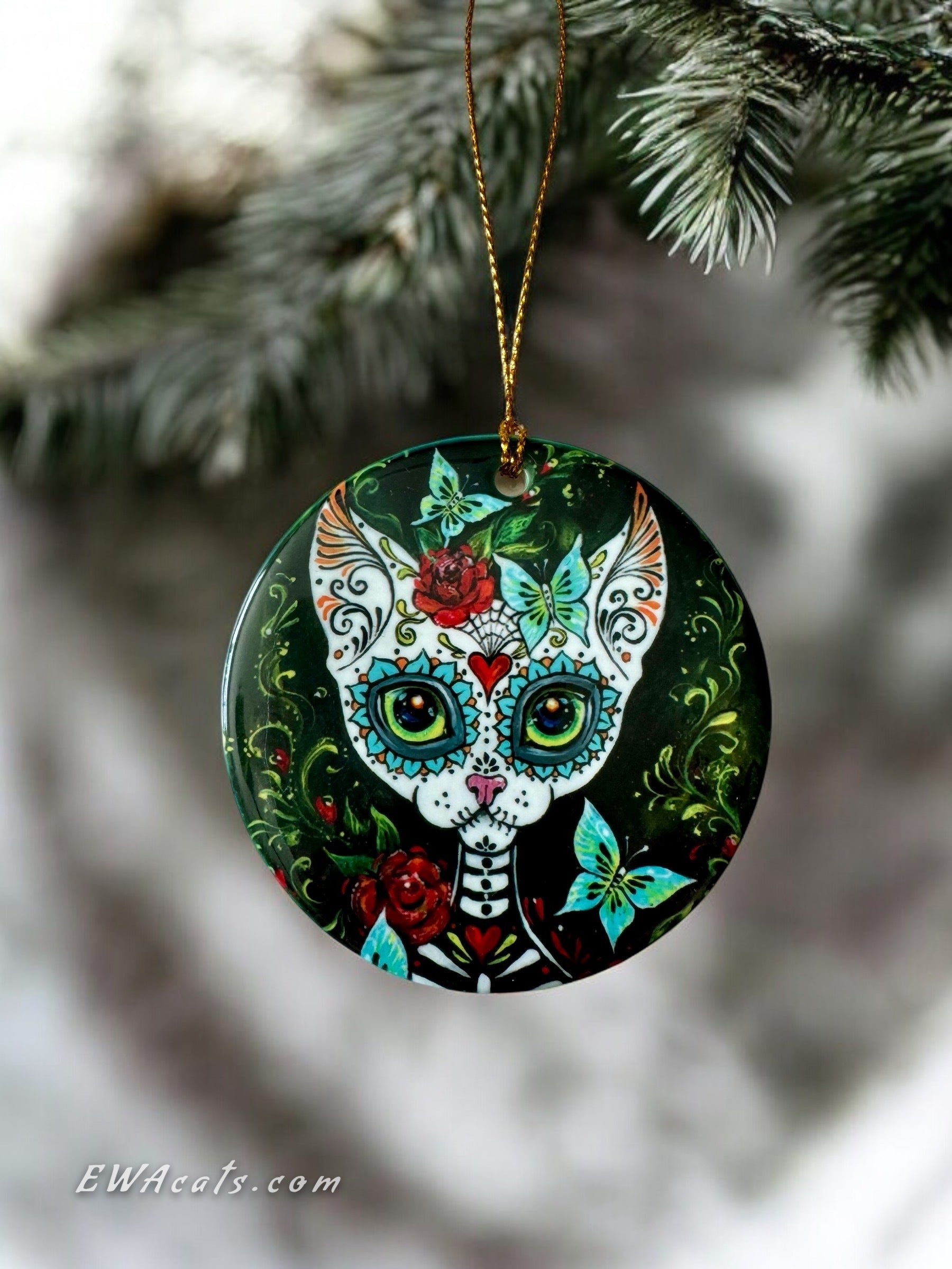 ORNAMENT Porcelain 3"x 3" Round "Sugar Kitty"