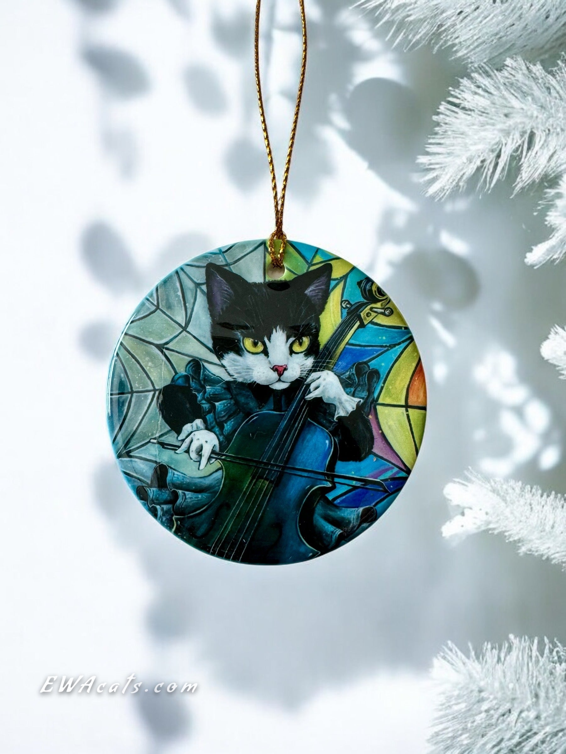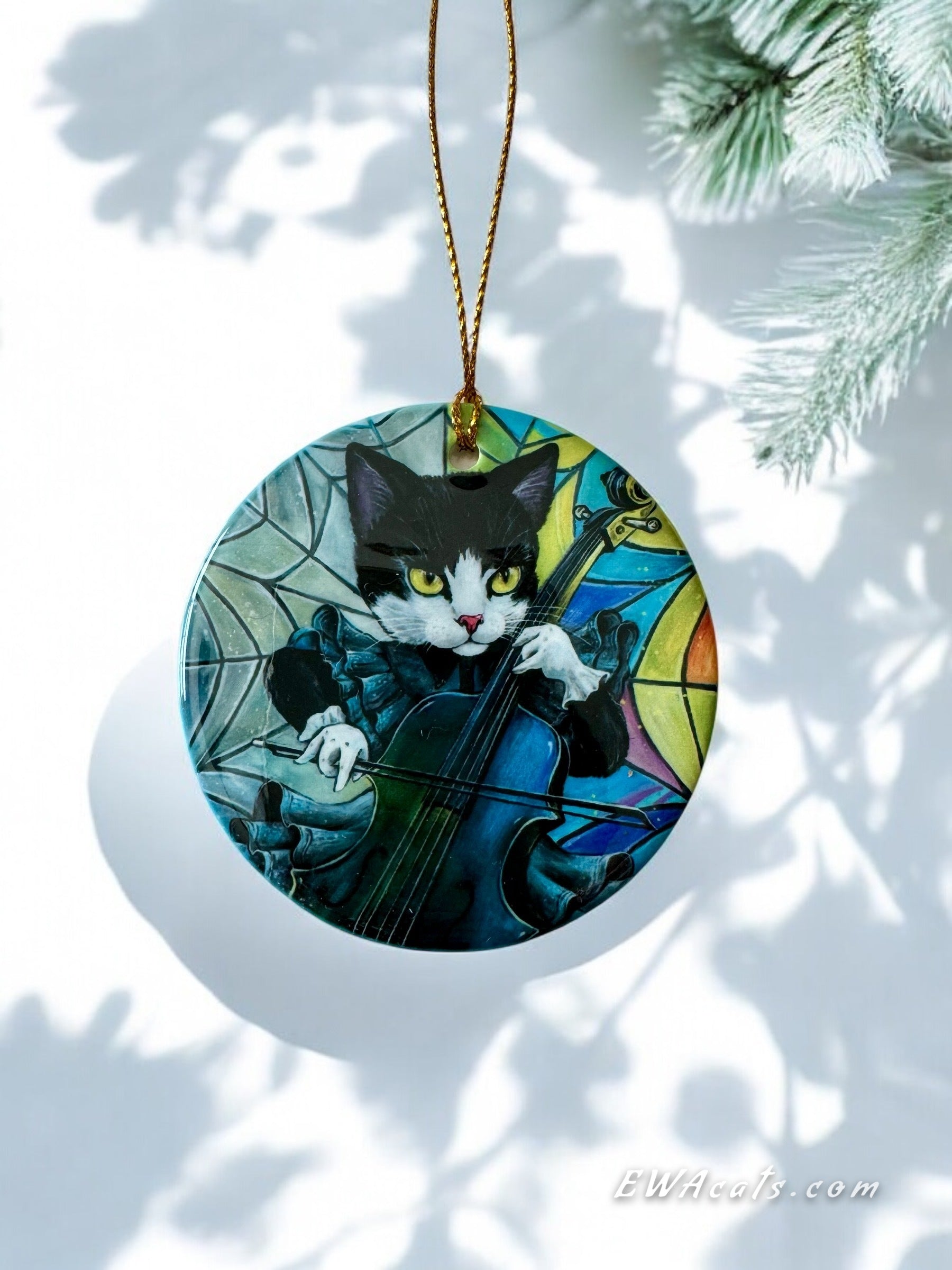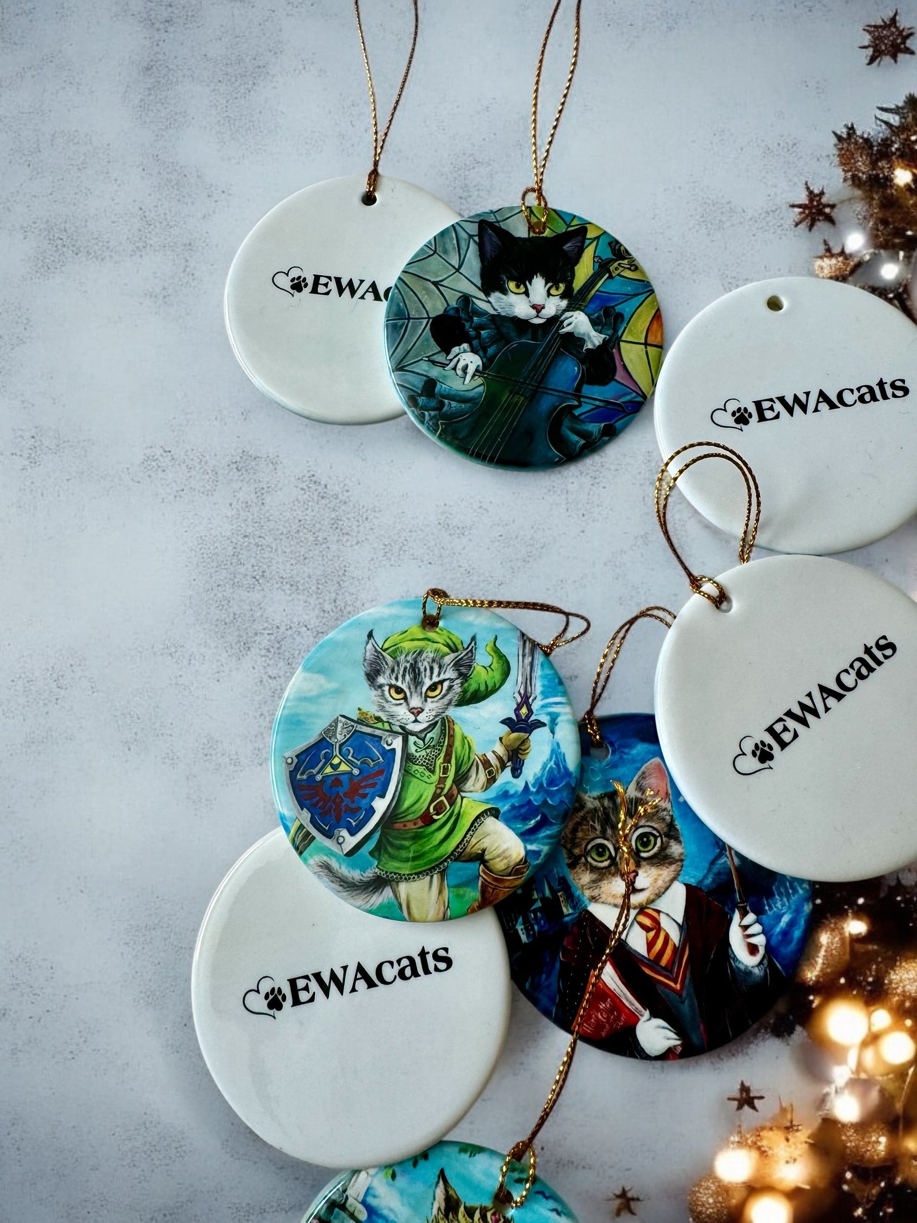Our 3" x 3" Round Porcelain Ornaments are handmade from my original paintings, with sharp, vibrant details. The image is printed on one side while the other side showcases our beautiful logo with a heart and cat pawprint.
